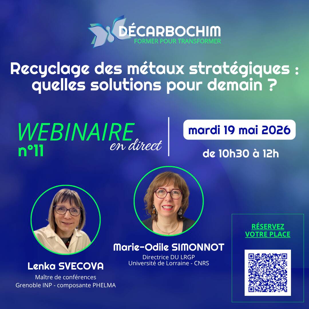- L’hydrométallurgie, avec Lenka Svecova - Maître de conférences Grenoble INP - composante PHELMA : plongez au cœur des procédés chimiques innovants pour séparer et purifier ces métaux avec une empreinte écologique réduite.